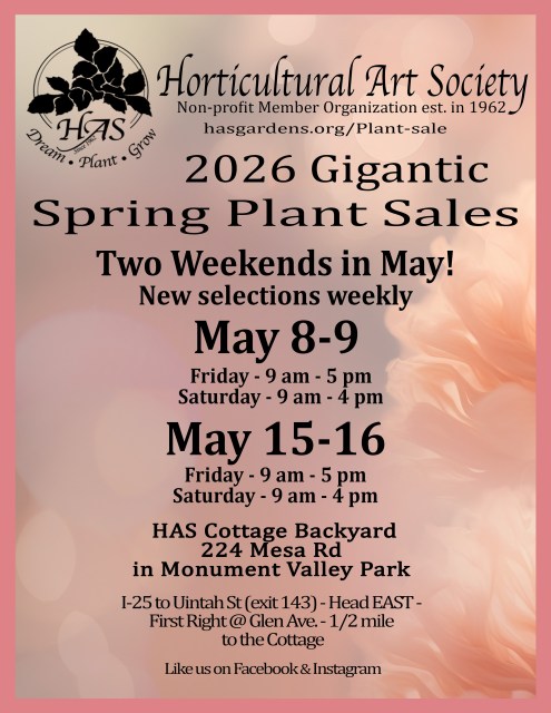 Make new friends, have fun, breathe fresh air, and contribute to the growth of horticulture in the Pikes Peak region. HAS runs on volunteer power and you as a helper can learn much about gardening from local gardeners.